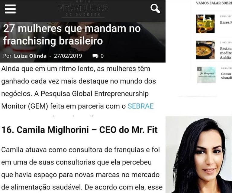 Com vasta experiência no setor de franquias, Camila Miglhorini, identificando uma necessidade do mercado e, por isso, uma oportunidade de negócio, mesmo com poucos recursos financeiros, resolveu lançar sua própria marca em 2011. Nasceu então, em 2011, na cidade de Paulínia (SP), a primeira unidade Mr. Fit Fast Food Saudável®, pioneira no ramo de fast food saudável no Brasil e com uma proposta inovadora: entregar comida de verdade, saudável, saborosa e com preço acessível. Na época, com apenas 45 unidades e por ser uma novidade no mercado. Camila foi destaque pela primeira vez no PEGN em 2011 e agora em 2025 novamente, abaixo um trecho das matérias do início da nossa história e agora em 2025.